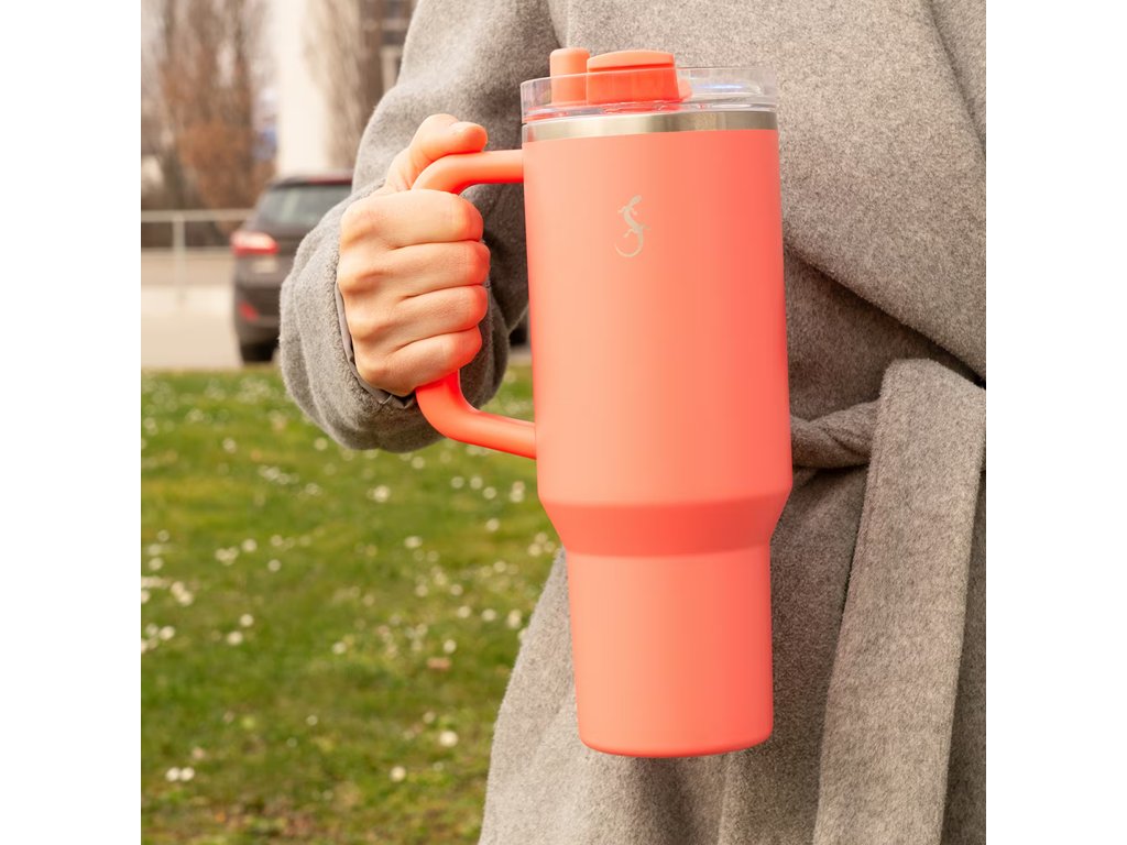 Široká a ergonomicky tvarovaná rukojeť zajišťuje jistý úchop. Svůj nový oblíbený hrnek si tak můžete vzít všude s sebou. Vejde se také do většiny běžných držáků na nápoje v autě.