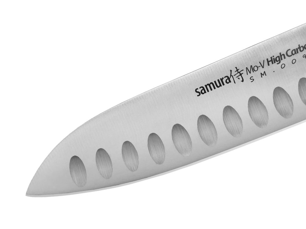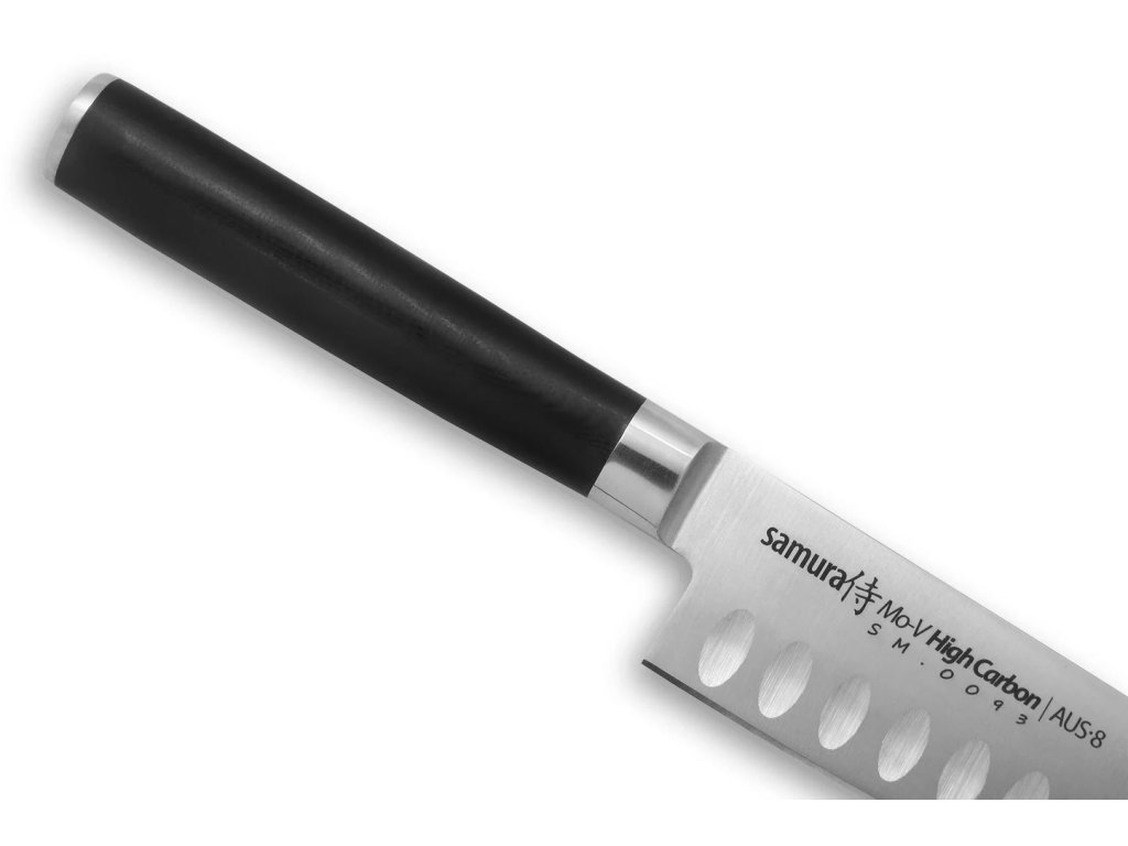Elegantní design s odolností jednoplátové molybden-vanadiové oceli. Geometrie čepele je inspirována oblíbenou řadou Damascus, díky čemuž je nůž santoku Samura MO-V navržen tak, aby bez problémů zvládl intenzivní používání.