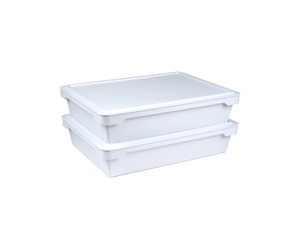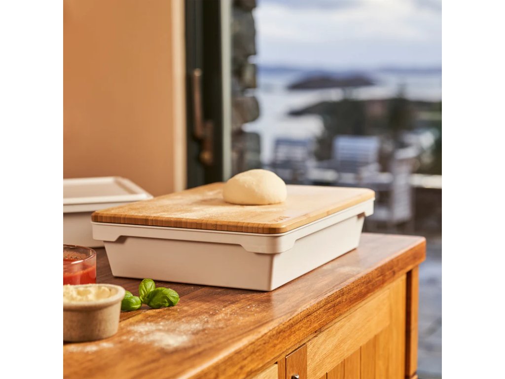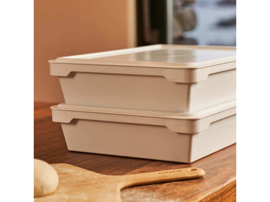 Boxy na těsto Ooni jsou praktickým řešením pro kynutí a skladování těsta na pizzu. Každý box pojme až šest těstových bochánků o hmotnosti 250 g, což umožňuje pohodlnou přípravu více pizz najednou. Díky stohovatelnému designu šetří místo při skladování i manipulaci, zatímco hladké vnitřní stěny usnadňují vyjmutí těsta bez poškození jeho struktury. Odolný plast bez BPA je vhodný pro použití v lednici i mrazáku a zajišťuje dlouhou životnost.