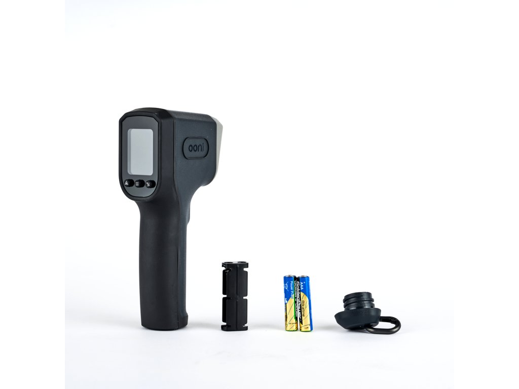 Digitální infračervený teploměr Ooni kombinuje laserem naváděné měření, jednoduché ovládání a odolné, ergonomické provedení. Je navržen tak, aby vám při každém pečení poskytl spolehlivé informace o teplotě kamene – pro správné načasování a perfektní výsledek.